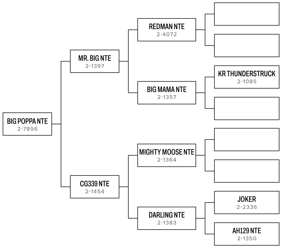 Big Poppa is a standout fallow buck known for his remarkable width, powerful genetics, and consistent production. He is the son of Mr. Big, one of the most iconic and influential bucks in the fallow deer industry, and out of a daughter of Mighty Moose; considered one of the most dominant sires when it comes to producing high-value females. His pedigree is further elevated by Darling, dam of the legendary buck Legend, and anchored with the strong genetic foundation